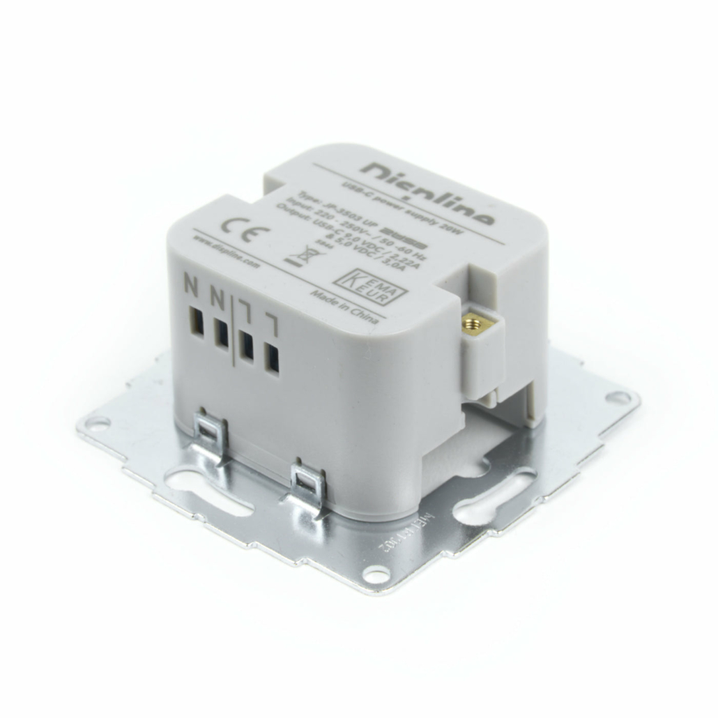 Notre alimentation encastrée Displine 20 W avec USB-C permet une charge intelligente en combinaison avec nos supports muraux.