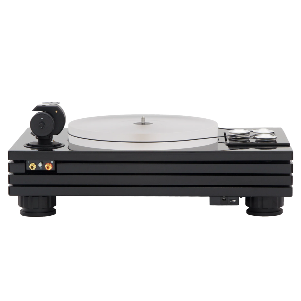 La platine est équipée d’un bras de lecture en fibre de carbone, conçu pour offrir rigidité, amortissement et légèreté. Il assure un suivi du sillon extrêmement précis, une excellente séparation des canaux et des timbres d’un réalisme saisissant.